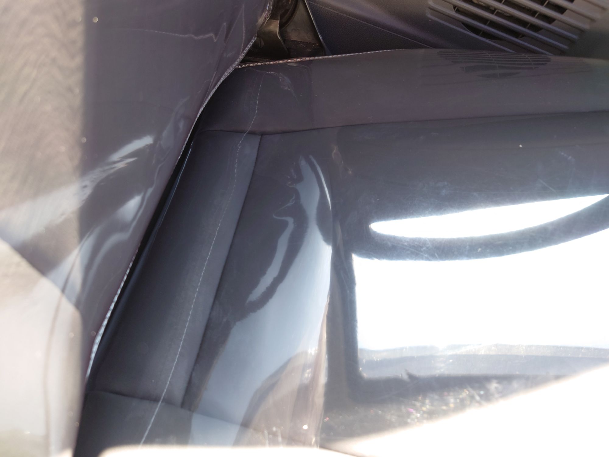 助手席の座席に消火器を置いていたら、ビニールのカバーに消火器の跡が残ってしまいました。