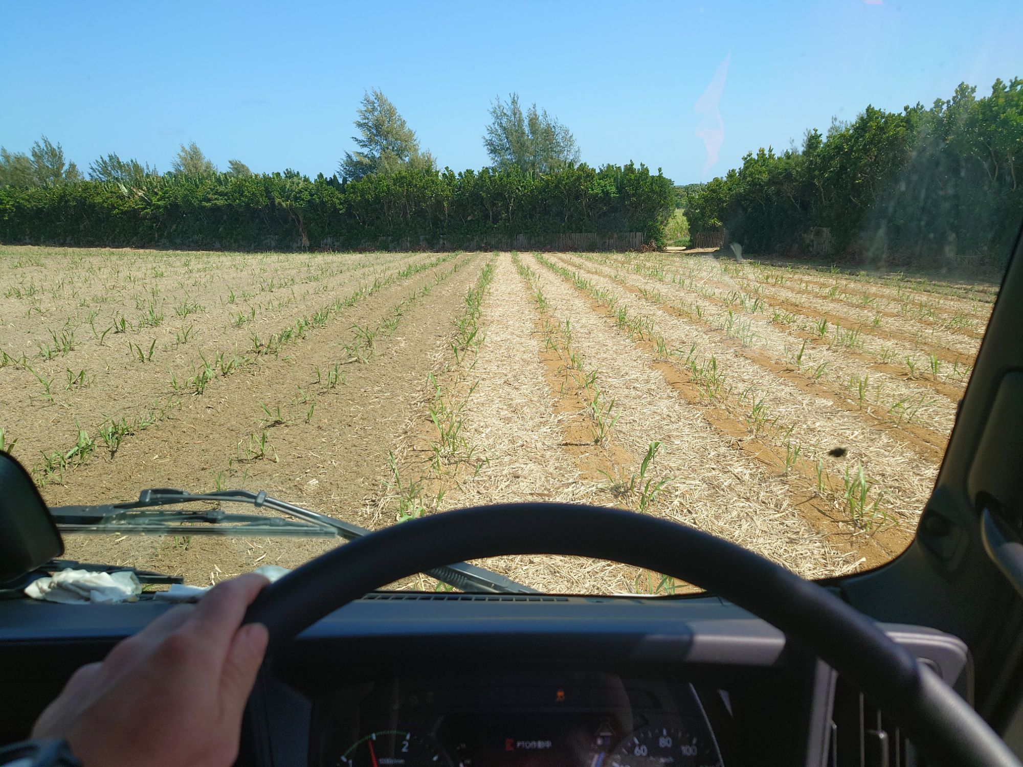 バガスを撒く畑まで行くのに15分程度かかるので、ラジオを聞きながら、ドライブです。