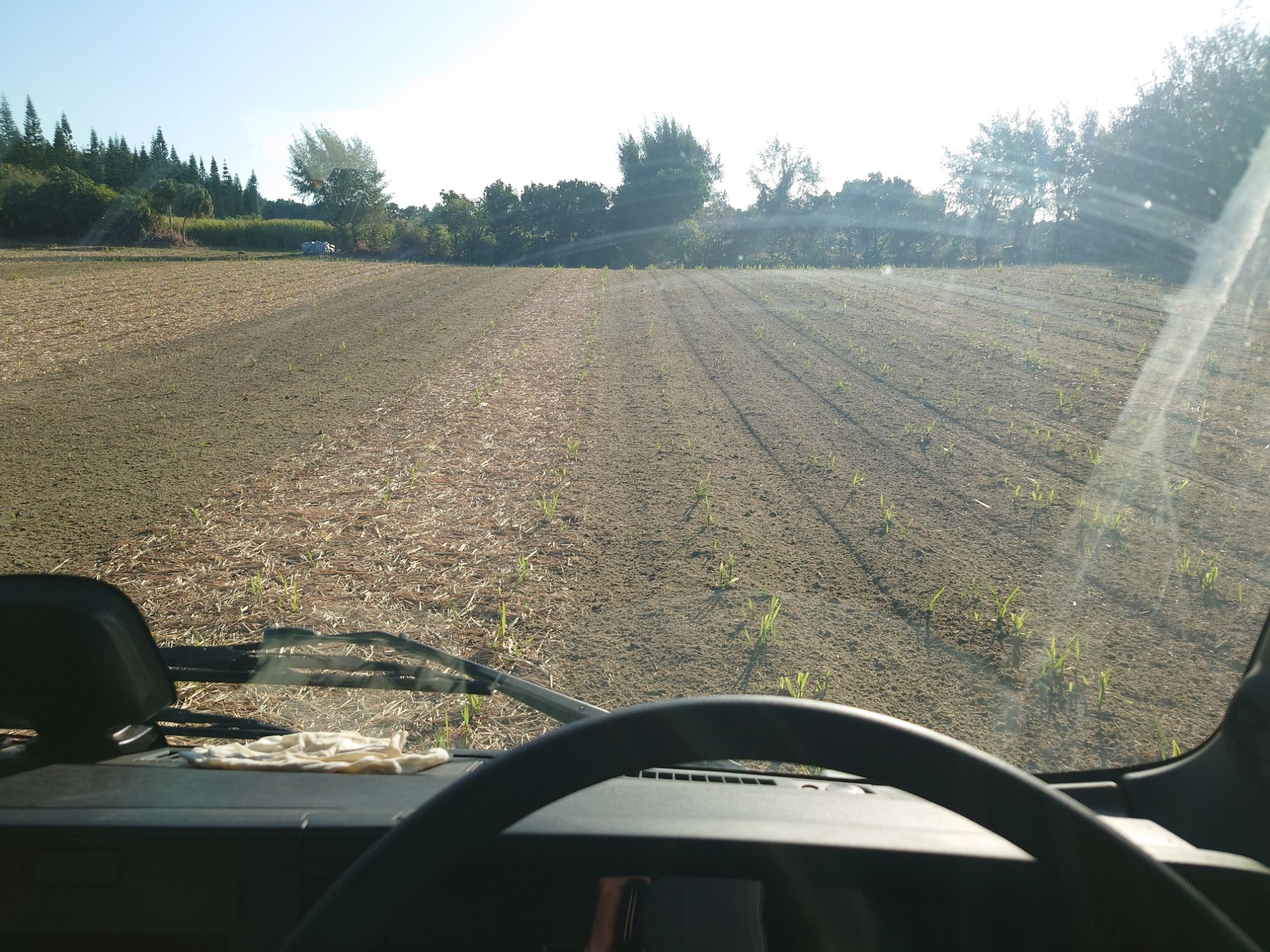 サトウキビの苗が生えているところが畝のギリギリな場所にある時が出てきて、真っすぐ走るよりは苗を踏まないように苗に沿って走るという感じになってきました。