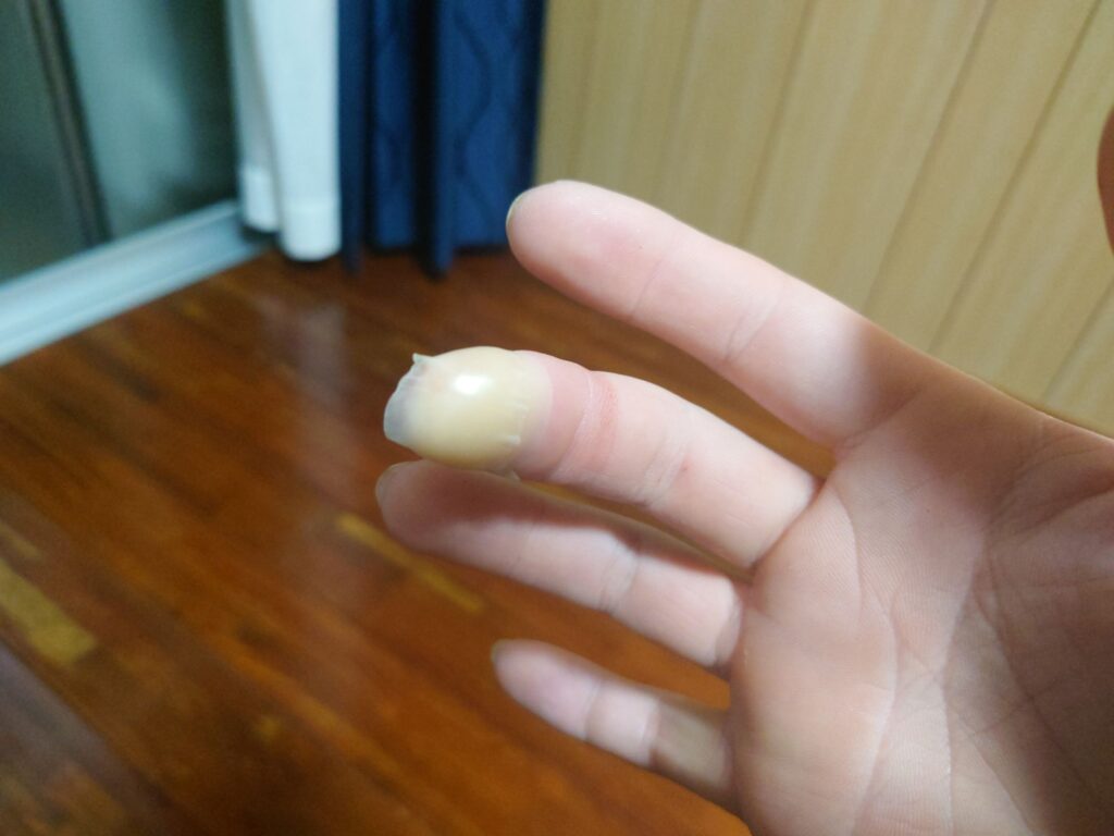 輪ゴムで止血して、そのあと、キズパワーパッドで傷口を塞ぎました。