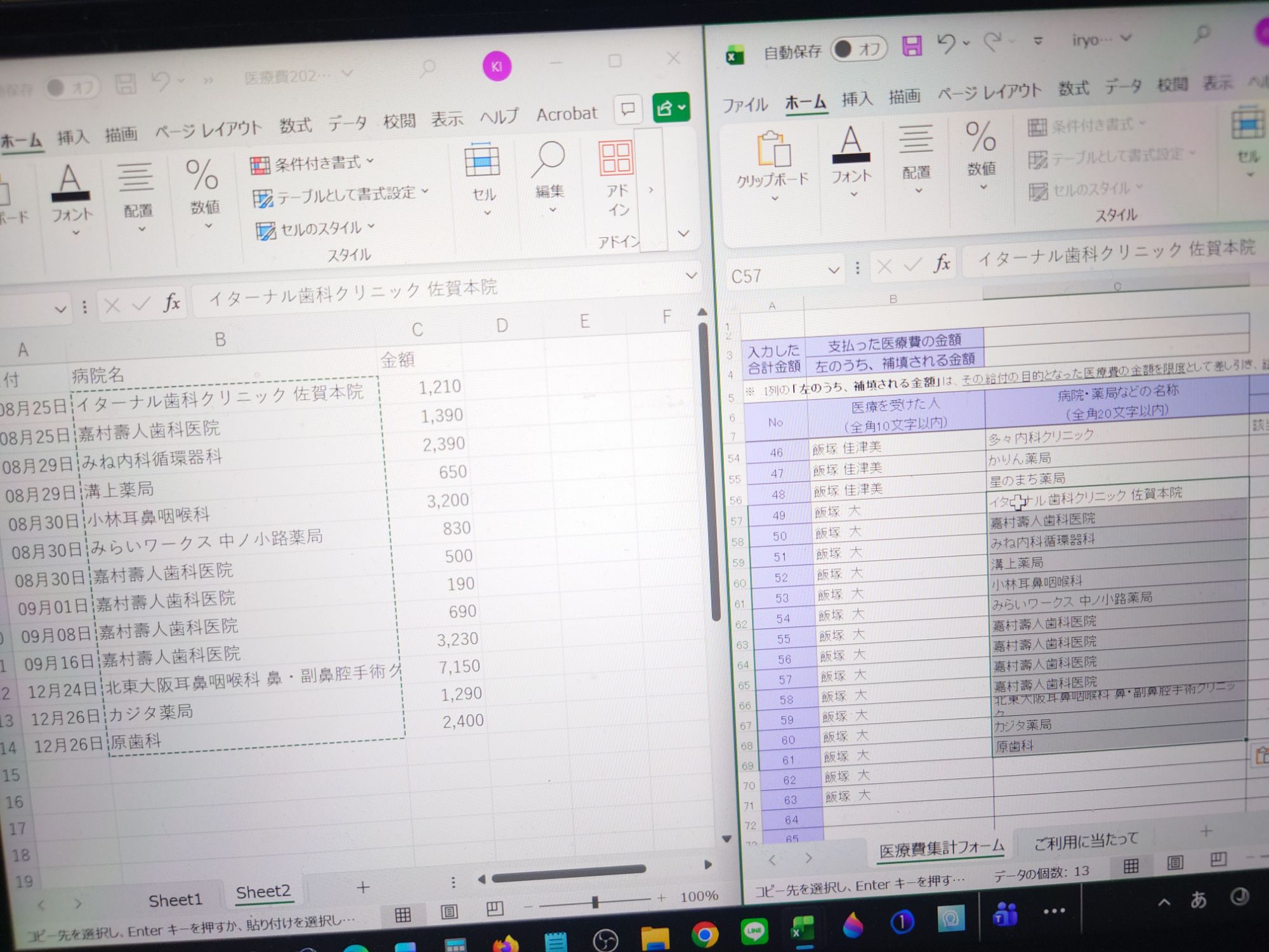 医療費を余裕ある時にコツコツ入力していって、最終的にコピペで終わらすという感じです。