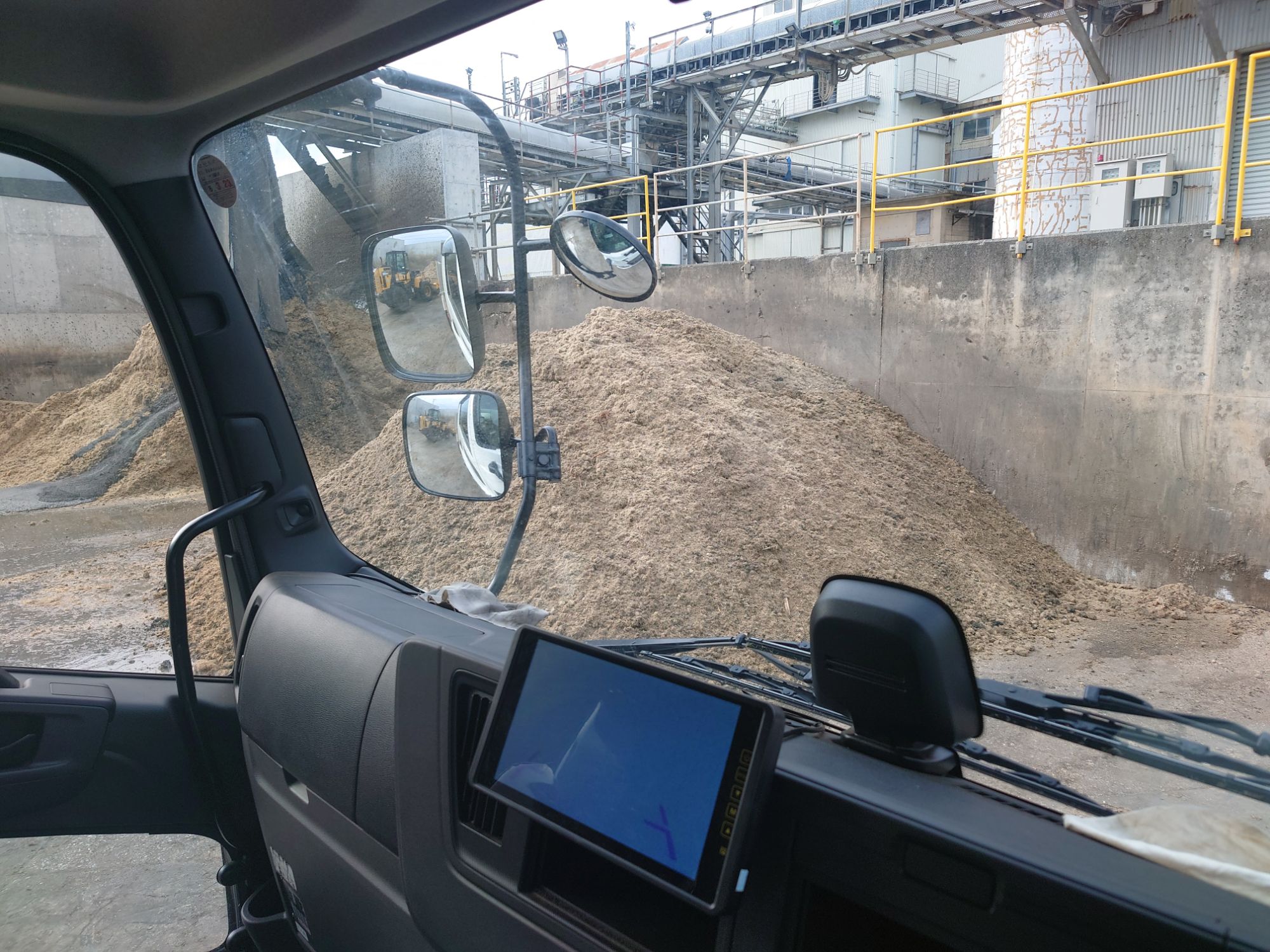 バックヤードからバガスを積み込みます。