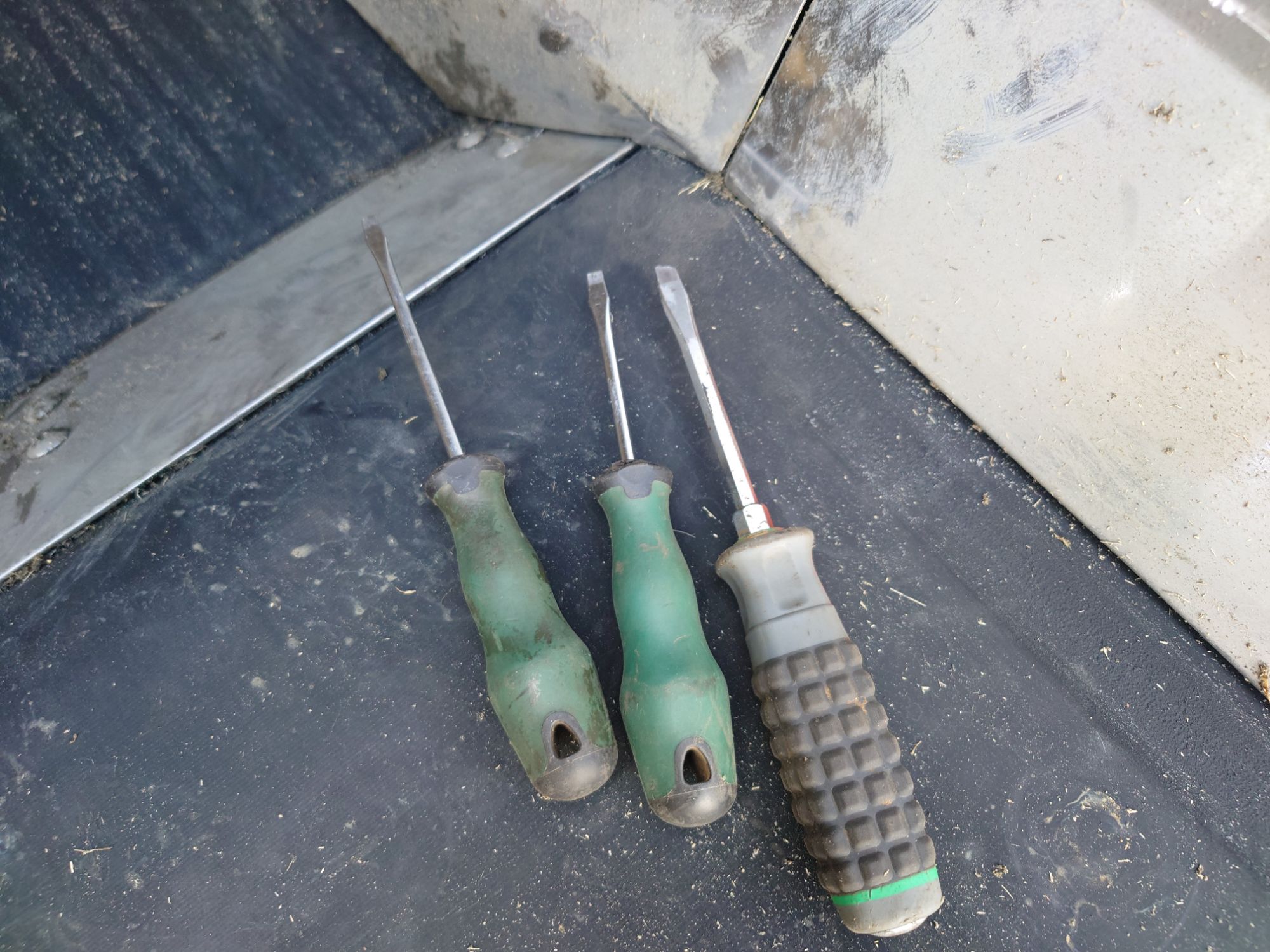 会社にあったサイズ違いのマイナスドライバーを3つ使いました。