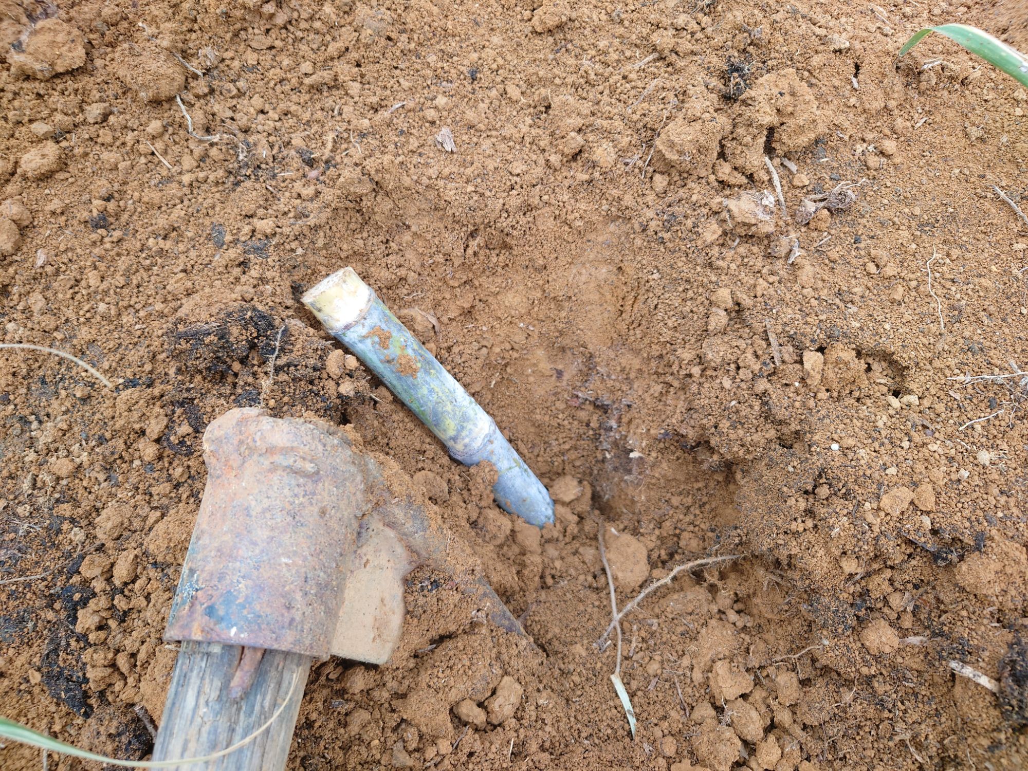 地元で抜根(木の根を抜く作業)を2年前くらいにやっていたので、それ以来のつるはし作業だと思います。