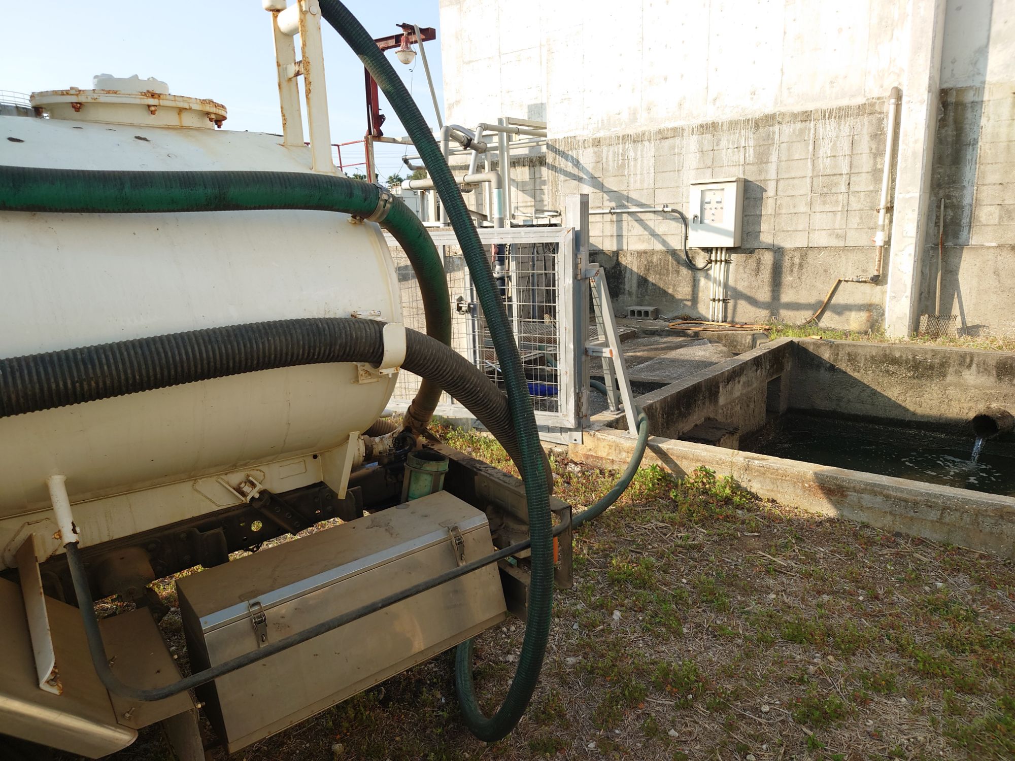 フェンスの吸引の時はいつもの捨て場に捨てていましたが、フェンスが終わった後にタンクを洗う所から吸引でした。