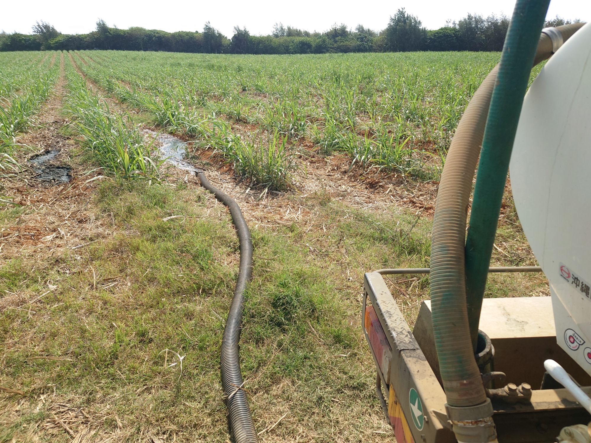 午前の作業は洗カン水捨てと、畑の水やりです。